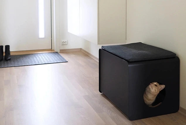 Une litière pour chat très design qui transforme un objet du quotidien en véritable meuble décoratif, alliant esthétisme, fonctionnalité et innovation, pour une intégration élégante dans tous les intérieurs modernes.
