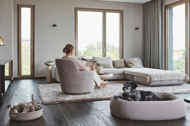 Un panier design pour chien qui allie élégance contemporaine et confort haut de gamme, avec son matelas à mémoire de forme et ses lignes épurées, créant un espace de repos chic et ergonomique.