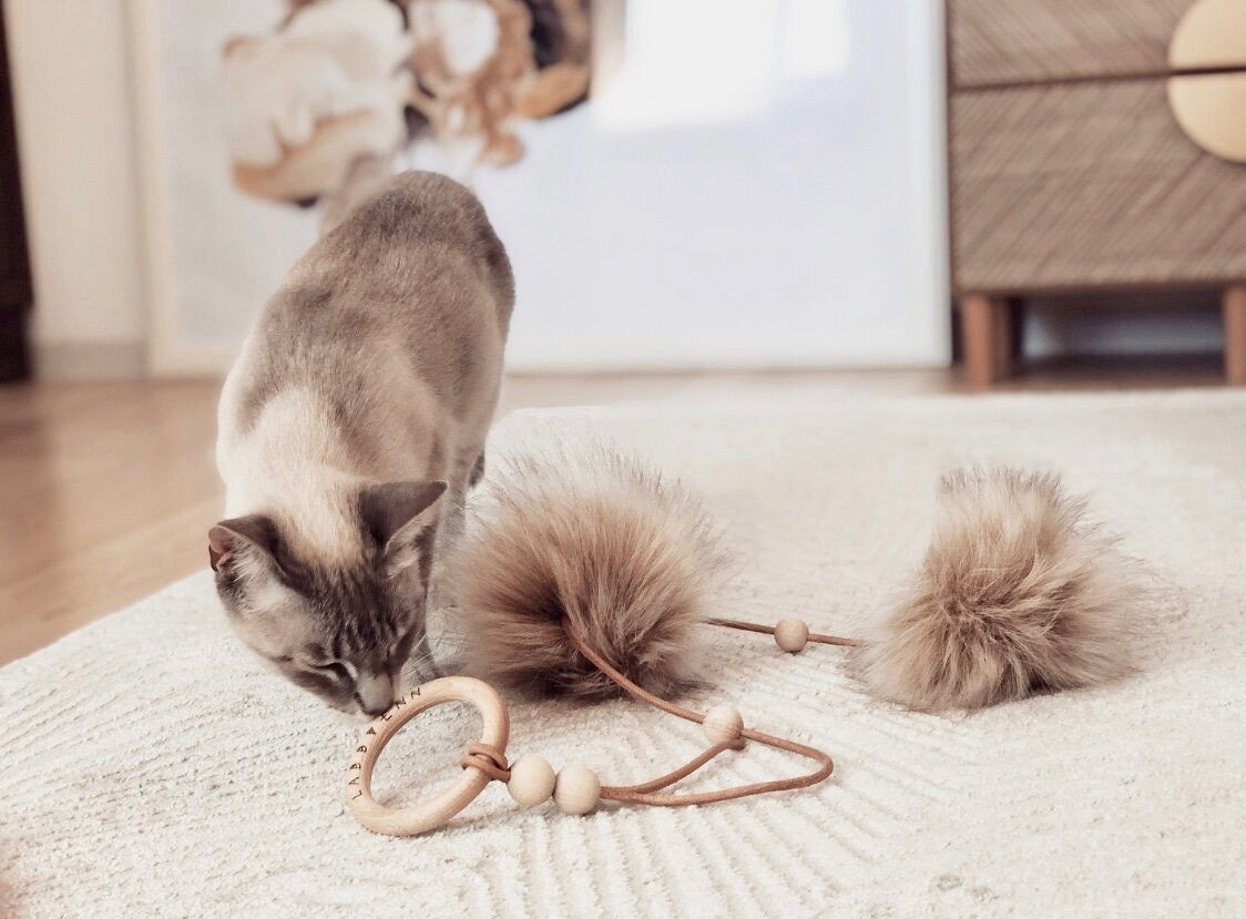 Qui a dit que le chat ne s'amusait qu'avec un bouchon et qu'il ne faisait ses griffes que sur votre canapé ? Ce petit malin aimera les jouets faits d'éternelles balles en matières naturelles et les pompons en fausse fourrure à suspendre à son griffoir design ou à traîner !