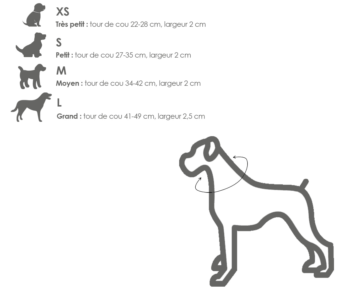 Consultez le guide des tailles pour choisir un collier adapté à votre chien.