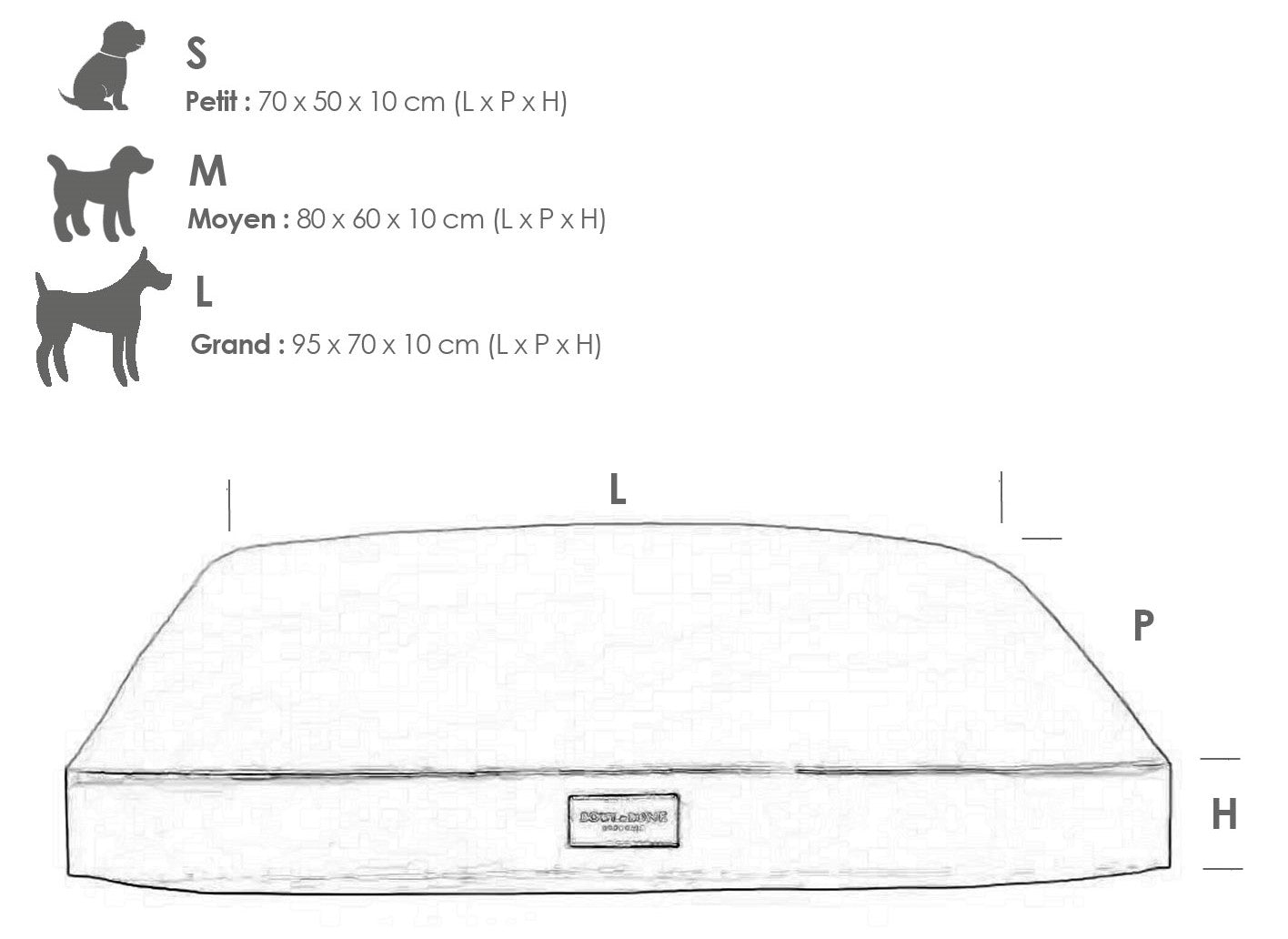 - L : 95 cm x 70 cm x 10 cm. Parfait pour le Golden Retriever, Boxer, Husky, Labrador, Dalmatien, Setter Irlandais, Braque de Weimar, Rhodesian Ridgeback
