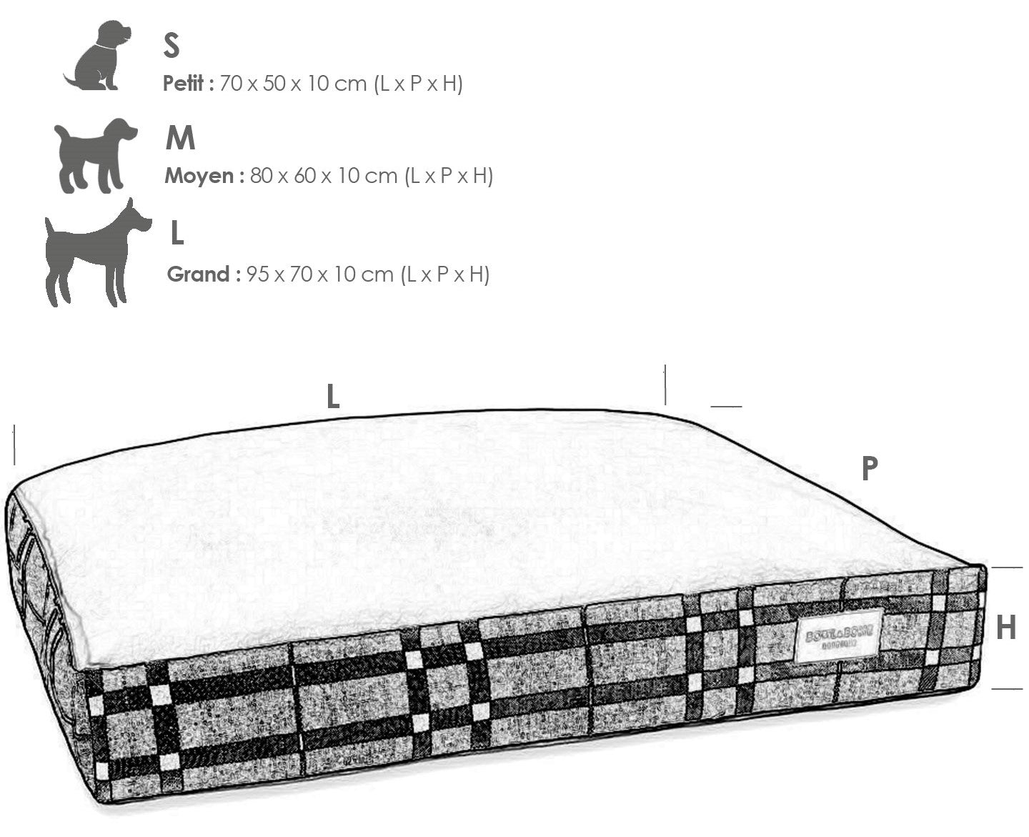 - S : 70 cm x 50 cm x 10 cm. Cette taille est recommandée pour les races telles que Yorkshire Terrier, Jack Russell, Maltais, Teckel, Bouledogue, Caniche Nain, Pékinois, Shih Tzu, Bichon, Corgi.