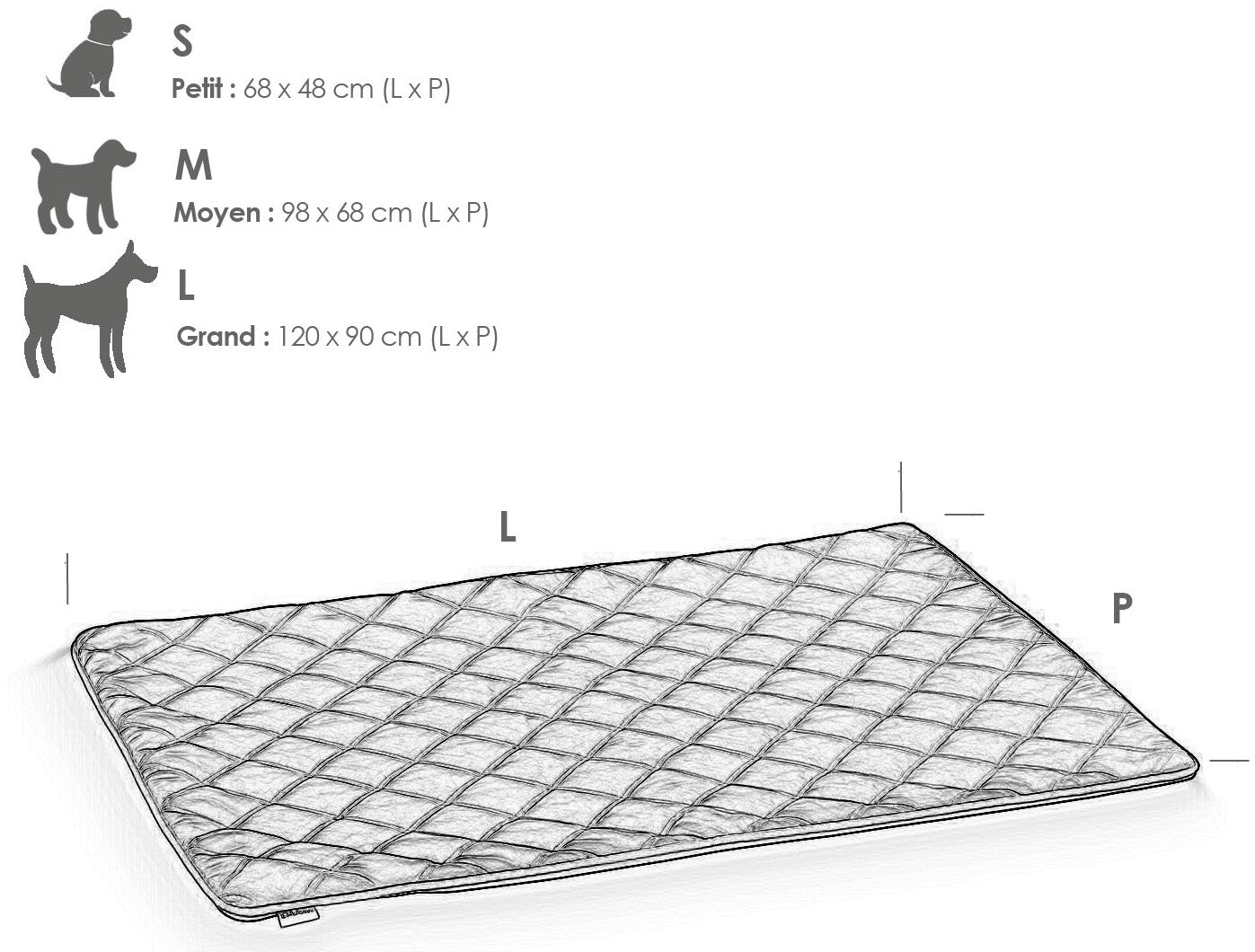 La couverture Cozy, d'une épaisseur de 3 cm, est disponible en trois formats :