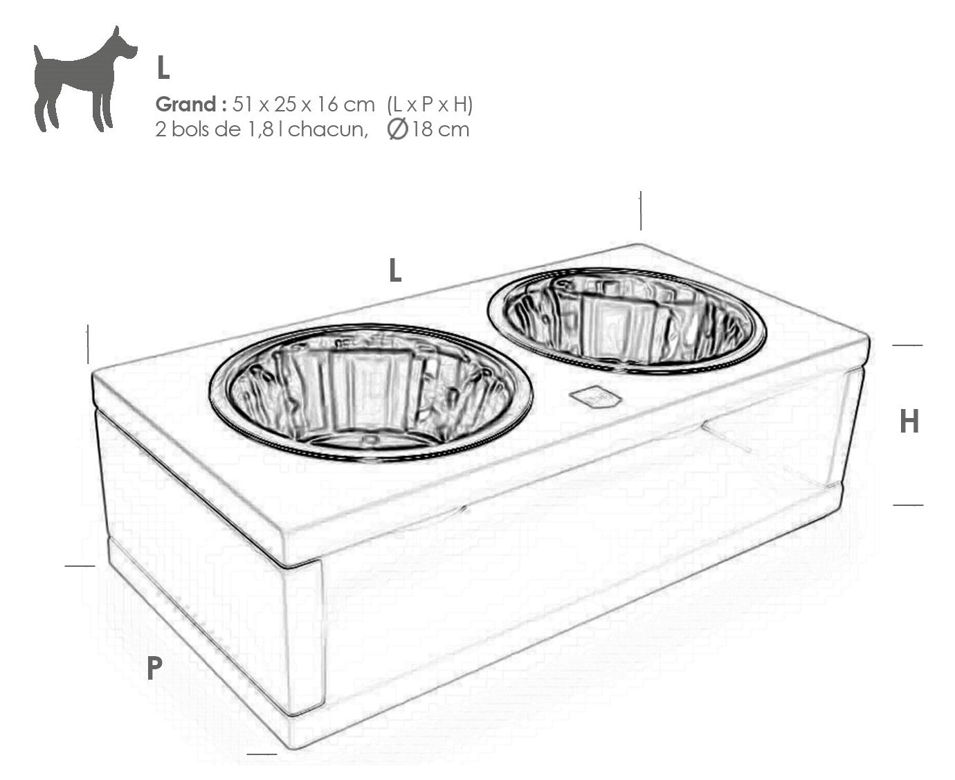 De belle capacité avec ses bols en acier inoxydable de 1,8 litres chacun, elle est prévue pour les grands chiens ou pour ceux qui ont de l'appétit. Grâce à cette matière, vous pouvez y placer de l'eau, des croquettes ou des aliments humides. On aime ce matériau sans danger pour votre compagnon. Le petit plus : ces bols se nettoient simplement au lave vaisselle. La structure s'entretient facilement avec un chiffon humide et doux.