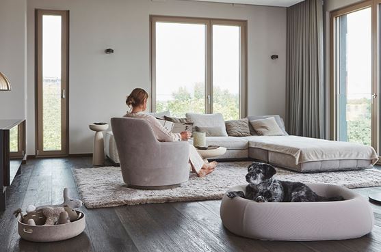 Le tissu est lavable à 60°C ou peut être nettoyé à sec. Après le lavage, il est préférable de laisser la housse sécher à l'air libre sur une grille. Ne mettez pas la housse au sèche-linge. Si nécessaire, repassez le tissu à basse température.