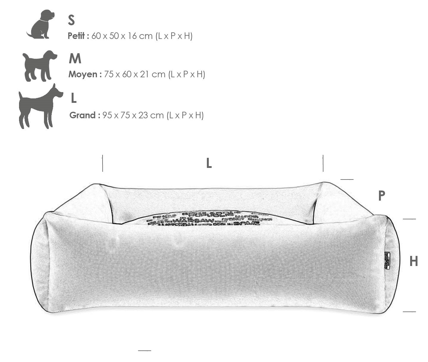 - M : 75 cm x 60 cm x 21 cm, parfait pour les races de chiens moyennes comme le Bouledogue, Teckel, Carlin, Caniche.