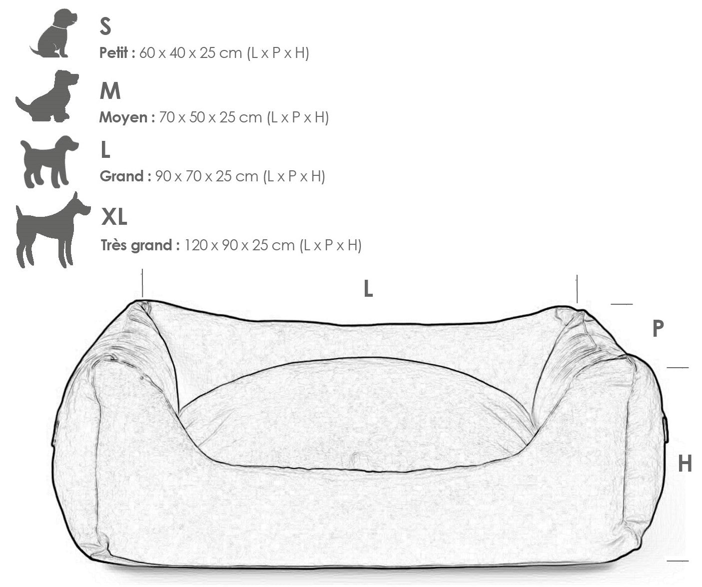 - XL : 90 × 120 × 30 cm. Dimensions extérieures : 100 cm x 130 cm x hauteur d'entrée 18 cm. Prévu pour les grands chiens comme le Bouvier Bernois, Berger Allemand, Saint Bernard, Dogue Allemand, Terre Neuve, Neapolitan Mastiff, Rottweiler, Malamute de l'Alaska, Mastiff, Mâtin des Pyrénées.