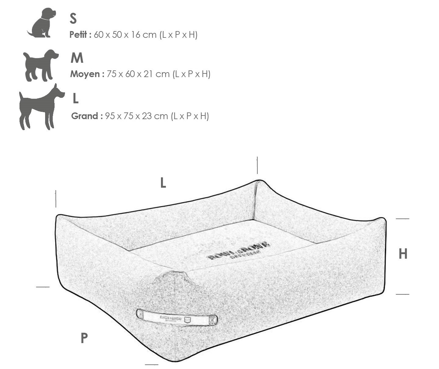 Ce panier pour chien classique et élégant est disponible 3 tailles (dimensions extérieures) :