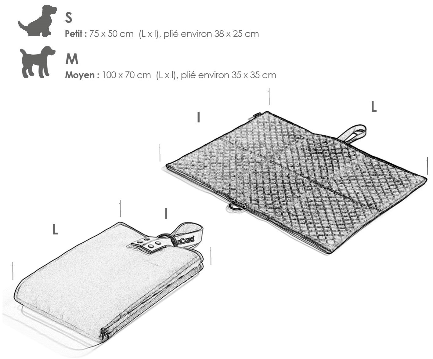 - Taille M ( 100 cm x 70 cm) ; il conviendra aux chiens de type Beagle, Colley, Cocker anglais, Schnauzer, Terrier irlandais, Berger australien, Pinscher.