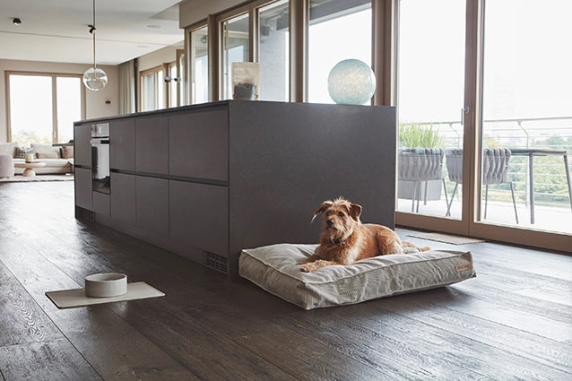 Le remplissage du coussin en polyuréthane est une mousse à cellules ouvertes extrêmement douce. Stable dans le temps, ce coussin est hypoallergénique et conserve durablement sa forme originelle ce qui offre à votre chien l'assurance d'un confort agréable chaque jour. Le tissu qui englobe le rembourrage est composé à 60% de coton et 40% de polyester. Pour faciliter son entretien, le coussin passe en machine jusque 60° et peut être mis au sèche-linge jusque 60°.